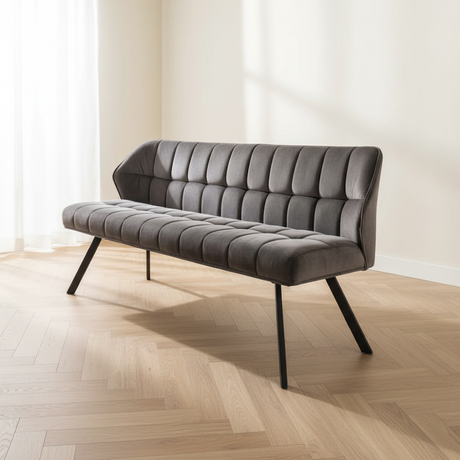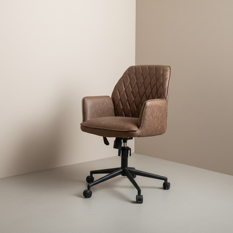 Silla de comedor giratoria industrial de tela marrón Novan – 180° giratoria