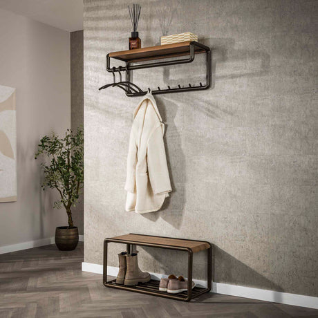 Perchero industrial de 12 ganchos Naomi de madera de acacia-metal