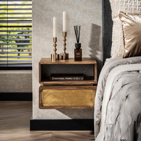 448,50Precio unitario /AgotadoSolano mesita de noche de 1 cajón Madera de mango Arena con pomo de latón