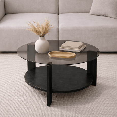 209,93Precio unitario /AgotadoRonde salontafel zwart melamine rookglas Ø75 cm - Cairo