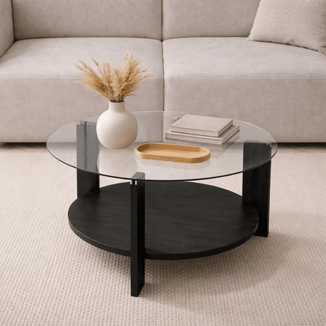 224,93Precio unitario /AgotadoRonde salontafel zwart melamine transparant glas Ø75 cm - Cairo