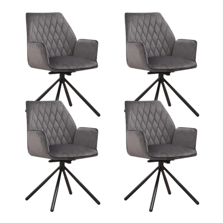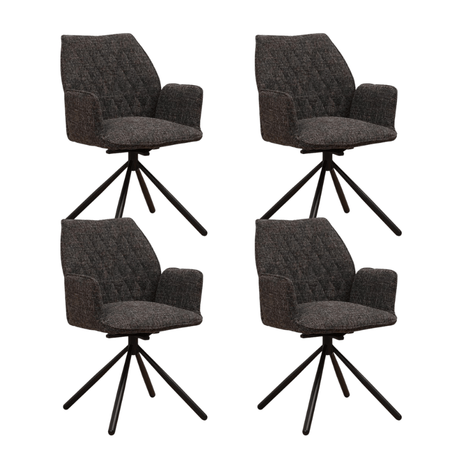 Juego de 4 Sillas de Comedor Giratorias Novan Industrial Antracita Tela – 180° Giratorias
