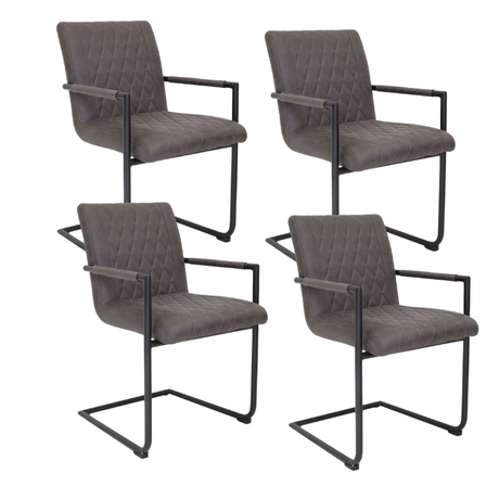 Juego de 4 Sillas de Comedor Dean Industrial Antracita - Tejido de Microfibra - Con Apoyabrazos