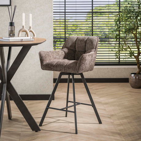 Taburete Lino Chenilla Tela Rico Taupe Giratorio