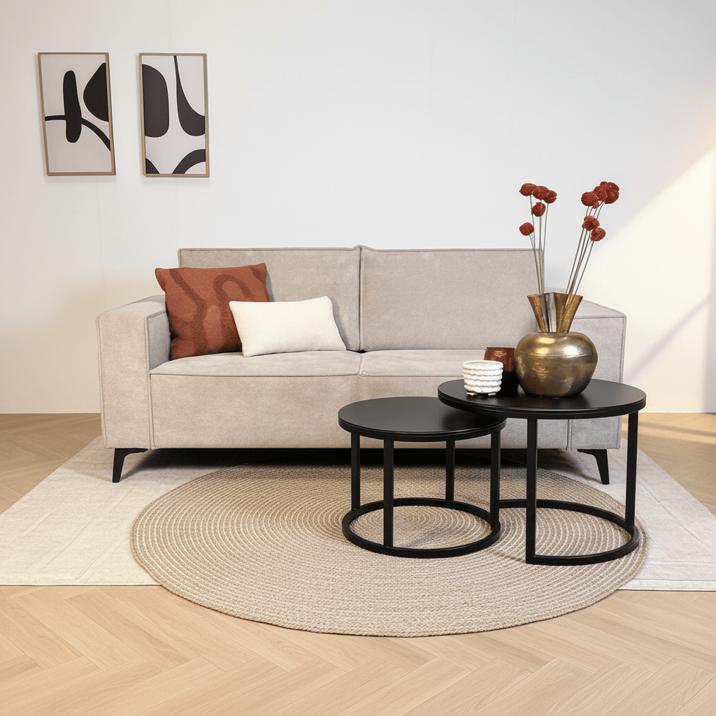 El Yara de 2 plazas está tapizado con una tela de chenilla suave y duradera en color antracita. La chenilla es conocida por su sensación cómoda y lujosa, pero sobre todo por su durabilidad. La tela le da al sofá una textura rica y suave y un acabado ligeramente brillante que añade un toque de lujo a tu interior.