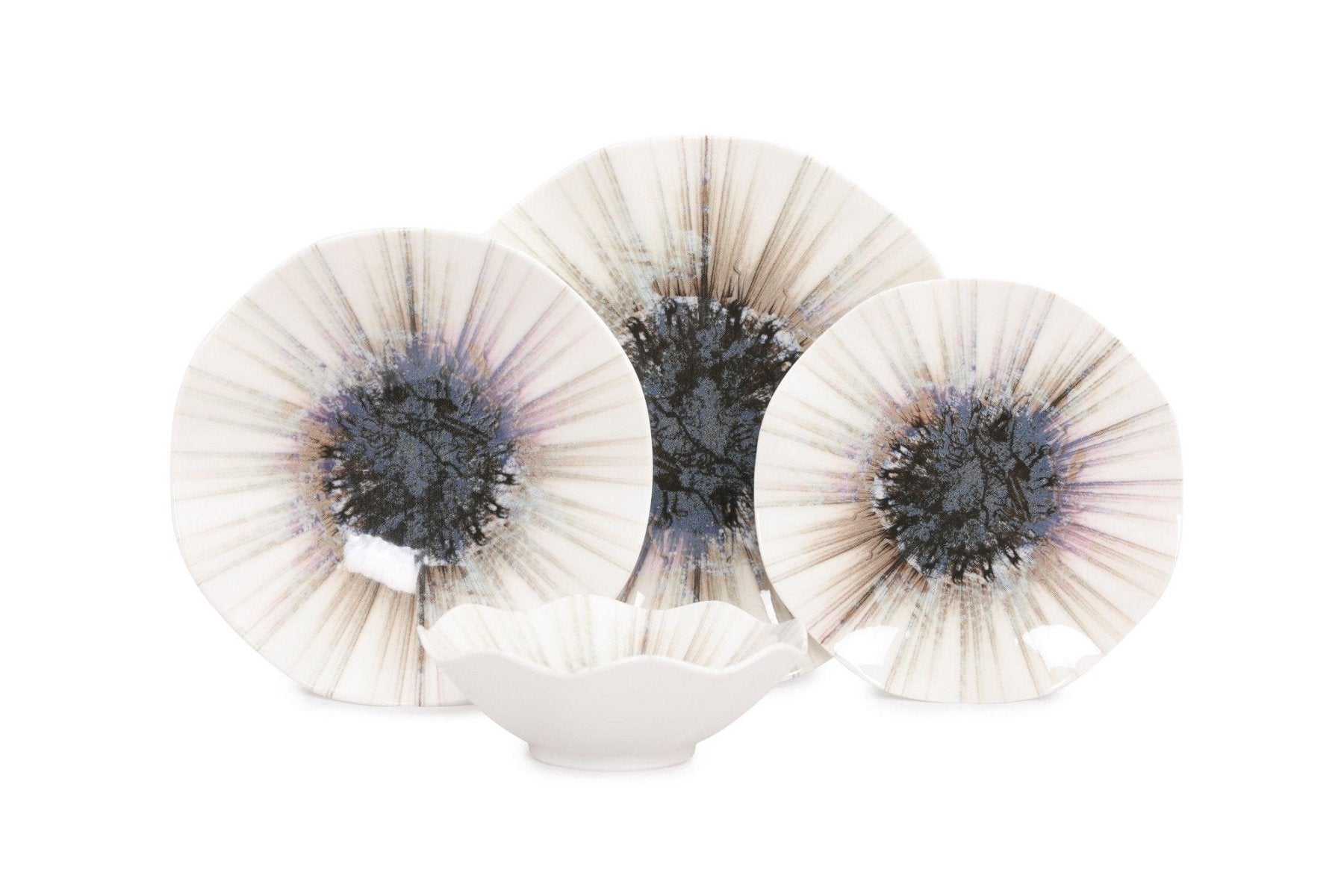 Deze serviesset onderscheidt zich door de combinatie van speelse patronen en kleuren die samen een stijlvol geheel vormen. Ideaal voor wie een unieke tafelsetting wil creëren zonder in te leveren op rust en samenhang. Het sterke porselein zorgt bovendien voor duurzaamheid en langdurig gebruik.