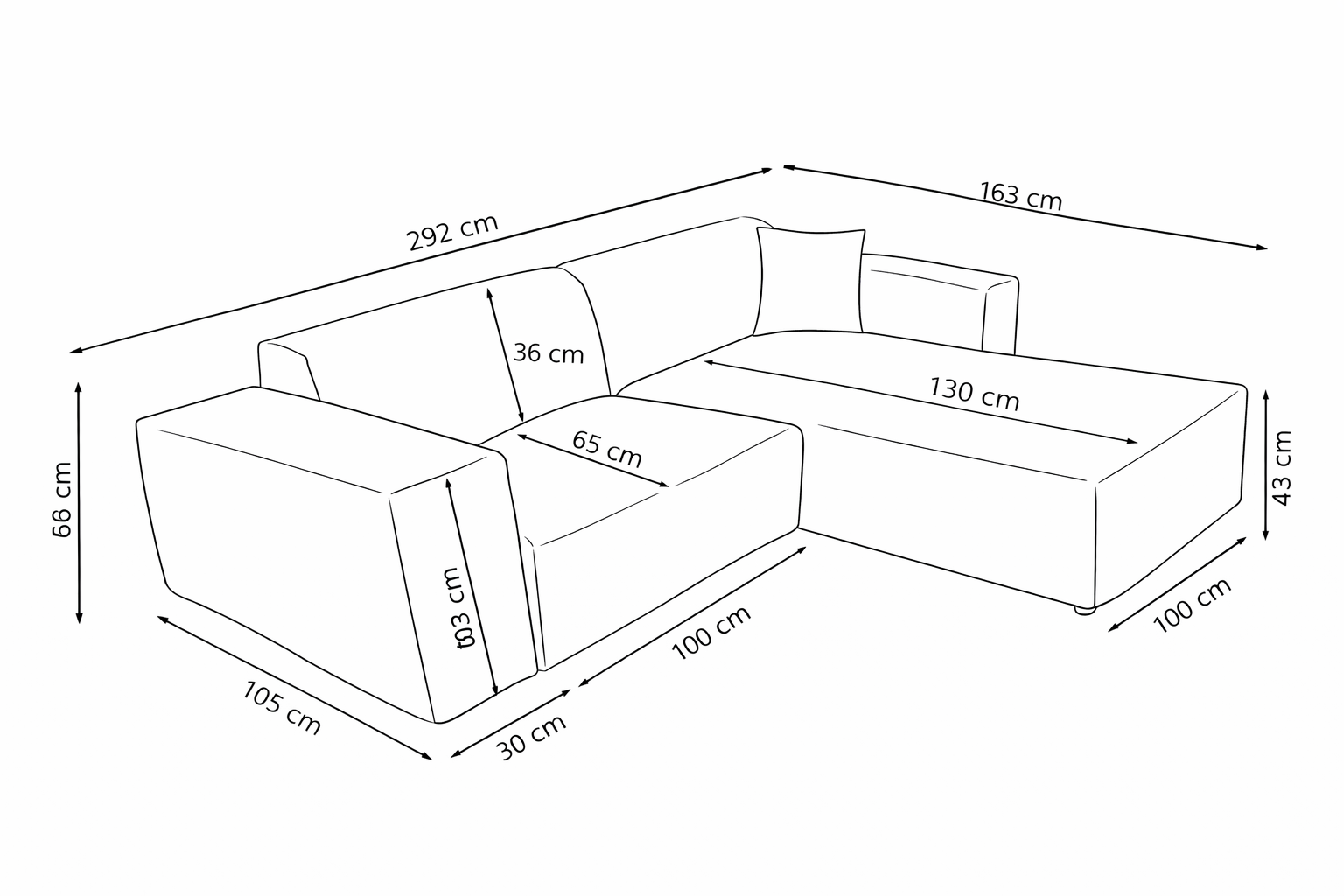 | Totale diepte | 160 cm (bij ottomane), 95 cm (zitgedeelte) |
