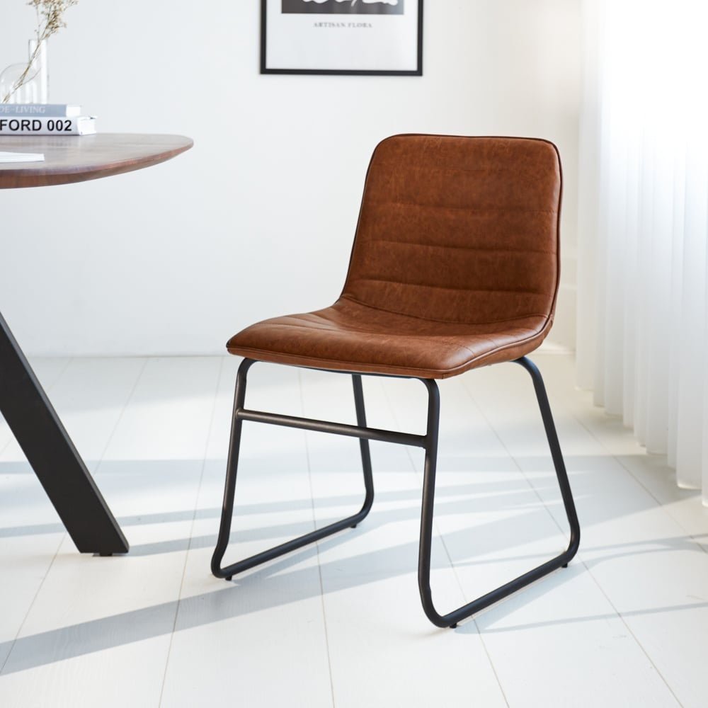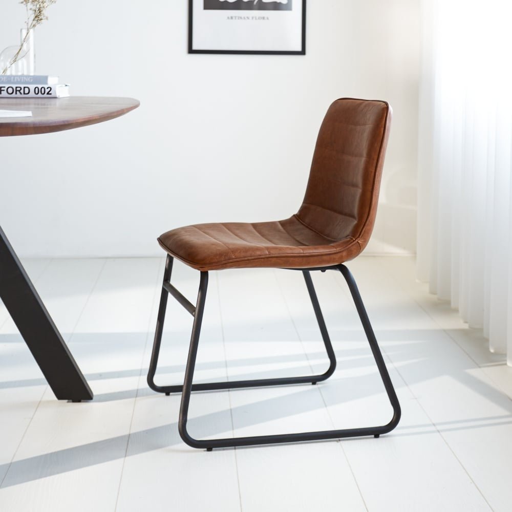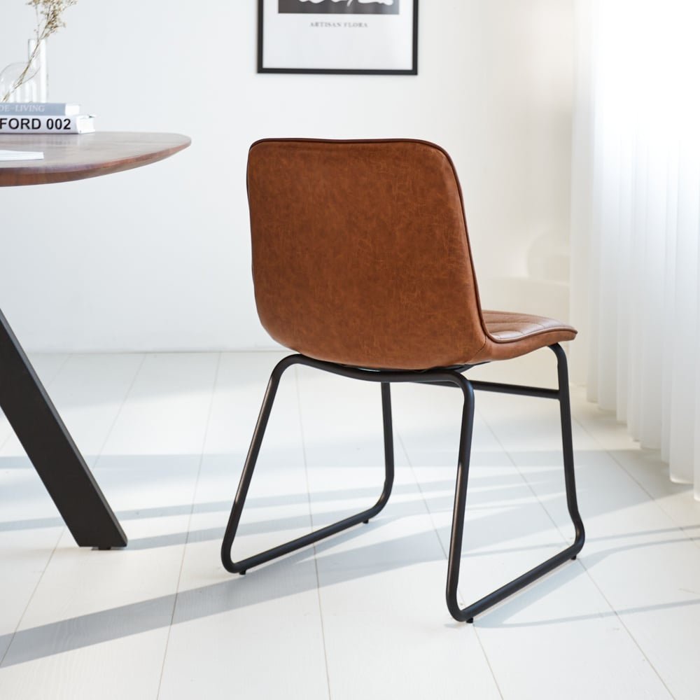 Silla de comedor industrial Mark Cognac - Cuero sintético - Sin reposabrazos