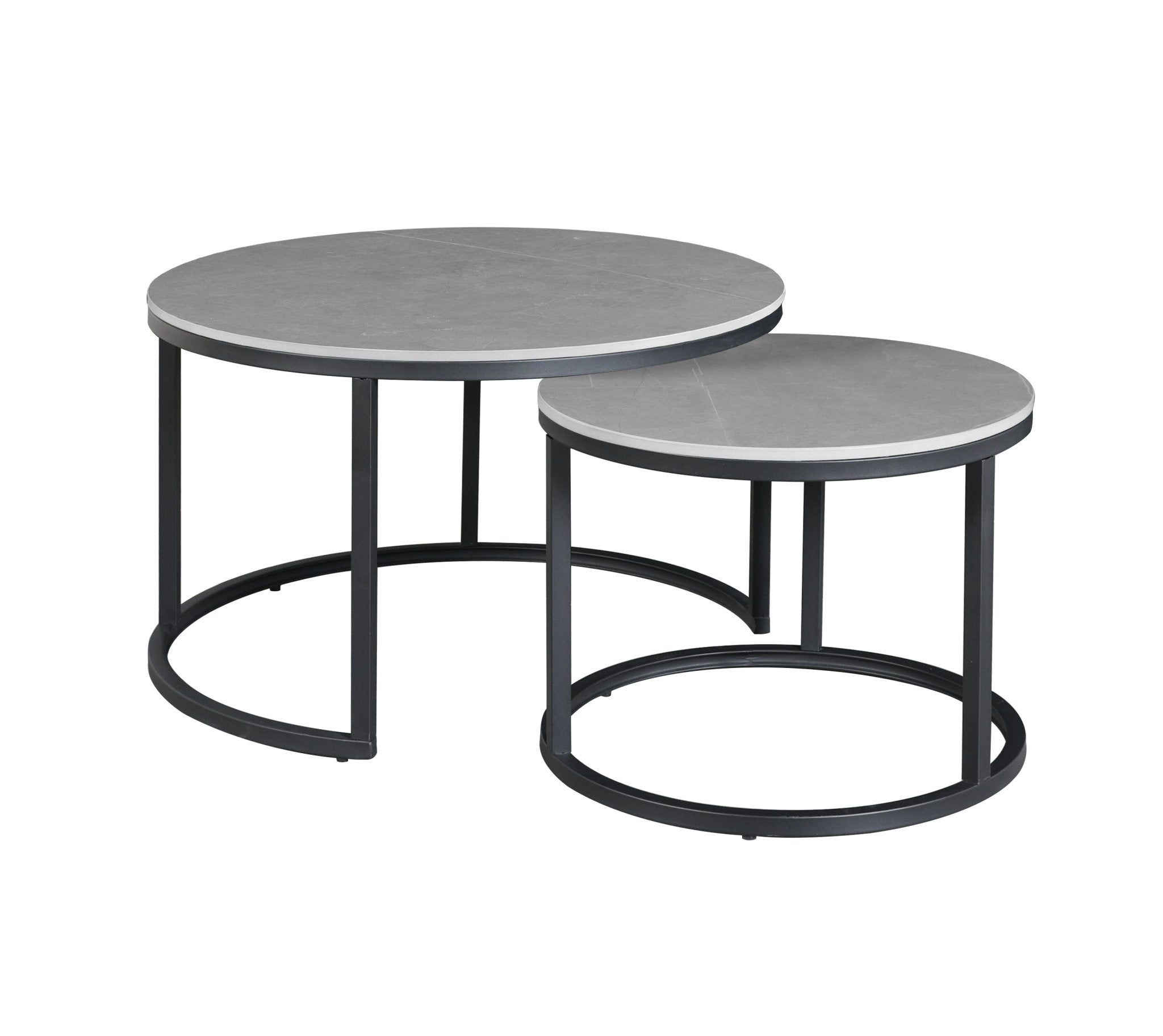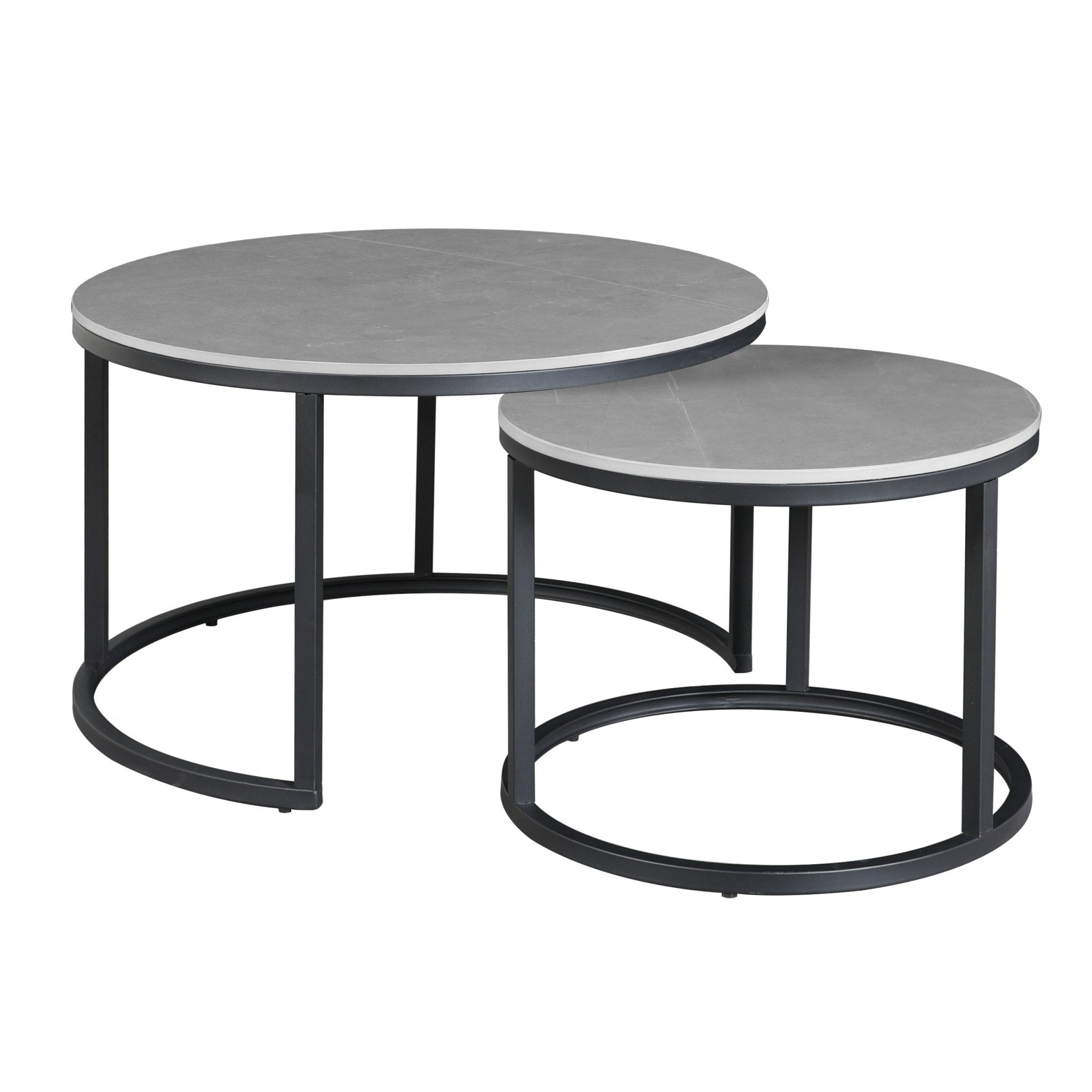 Set de mesa de café Trevor es un robusto juego de café de dos con un aspecto de mármol. La mesa de café es fresca, elegante y muy resistente. La hoja de la mesa de café está hecha de la piedra sinterizada del material resistente y contiene un patrón atmosférico. El conjunto se puede empujar uno debajo del otro o usarse por separado el uno del otro. El Trevor se ve industrial, pero también encaja perfectamente en un estilo interior diferente. Este conjunto está disponible en diferentes colores, descubre su favorito ahora.