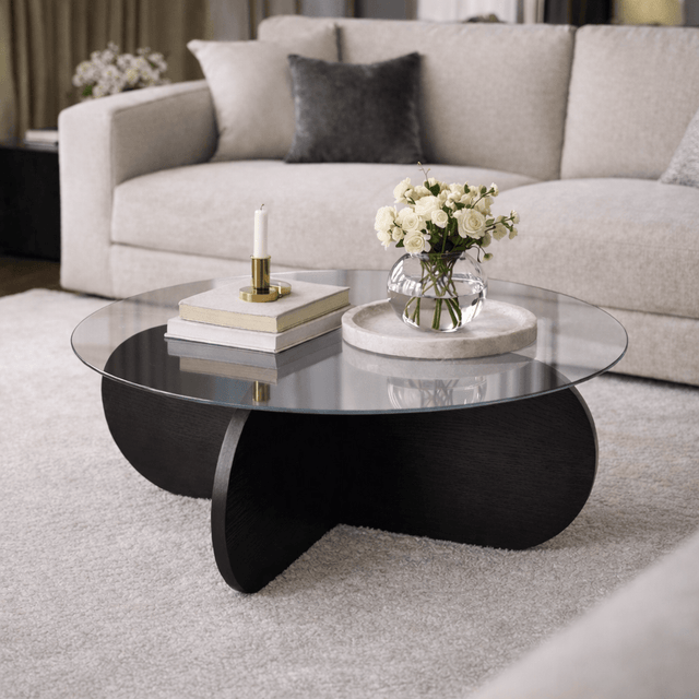 Mesa de salón Aris Redonda 75 cm Vidrio Tinte - Estructura Negra