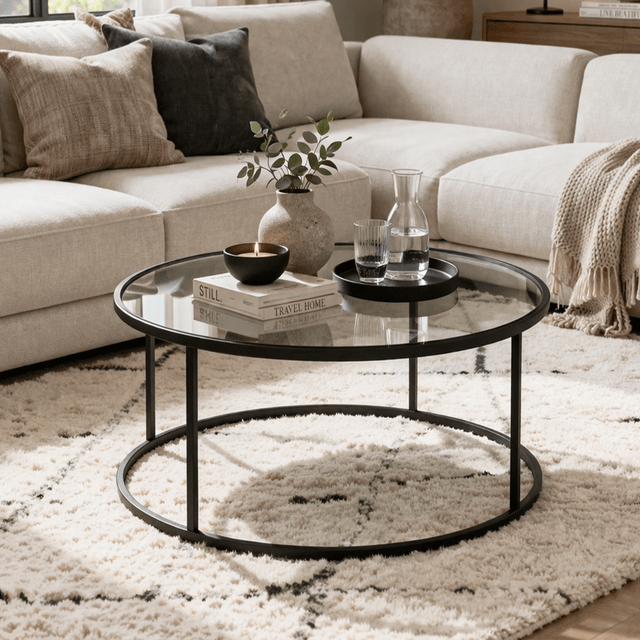Mesa de centro Vidrio Redonda metal negro - 80 cm - Barlin