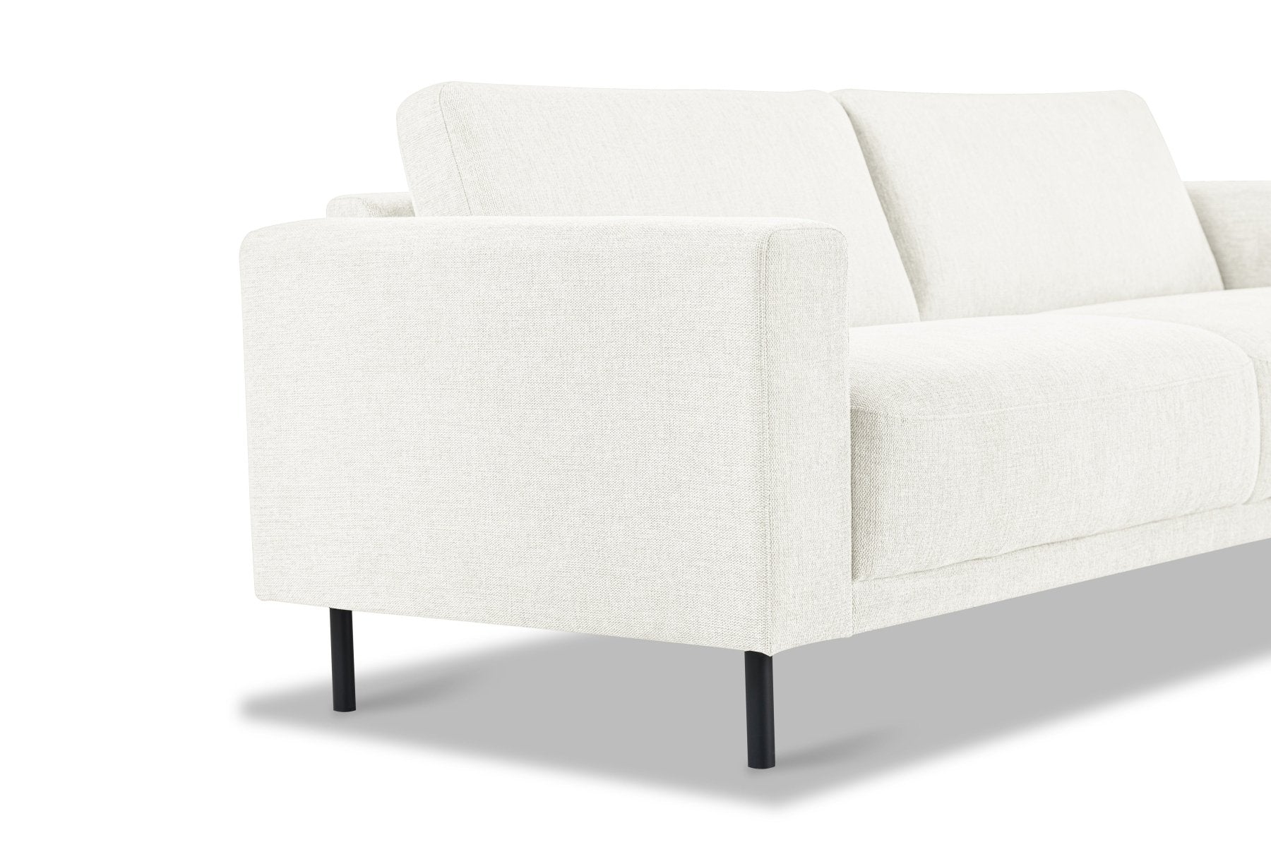 - Strakke afwerking: Elegante zwarte metalen poten van 150 mm hoog geven de bank een luchtige, moderne uitstraling.
