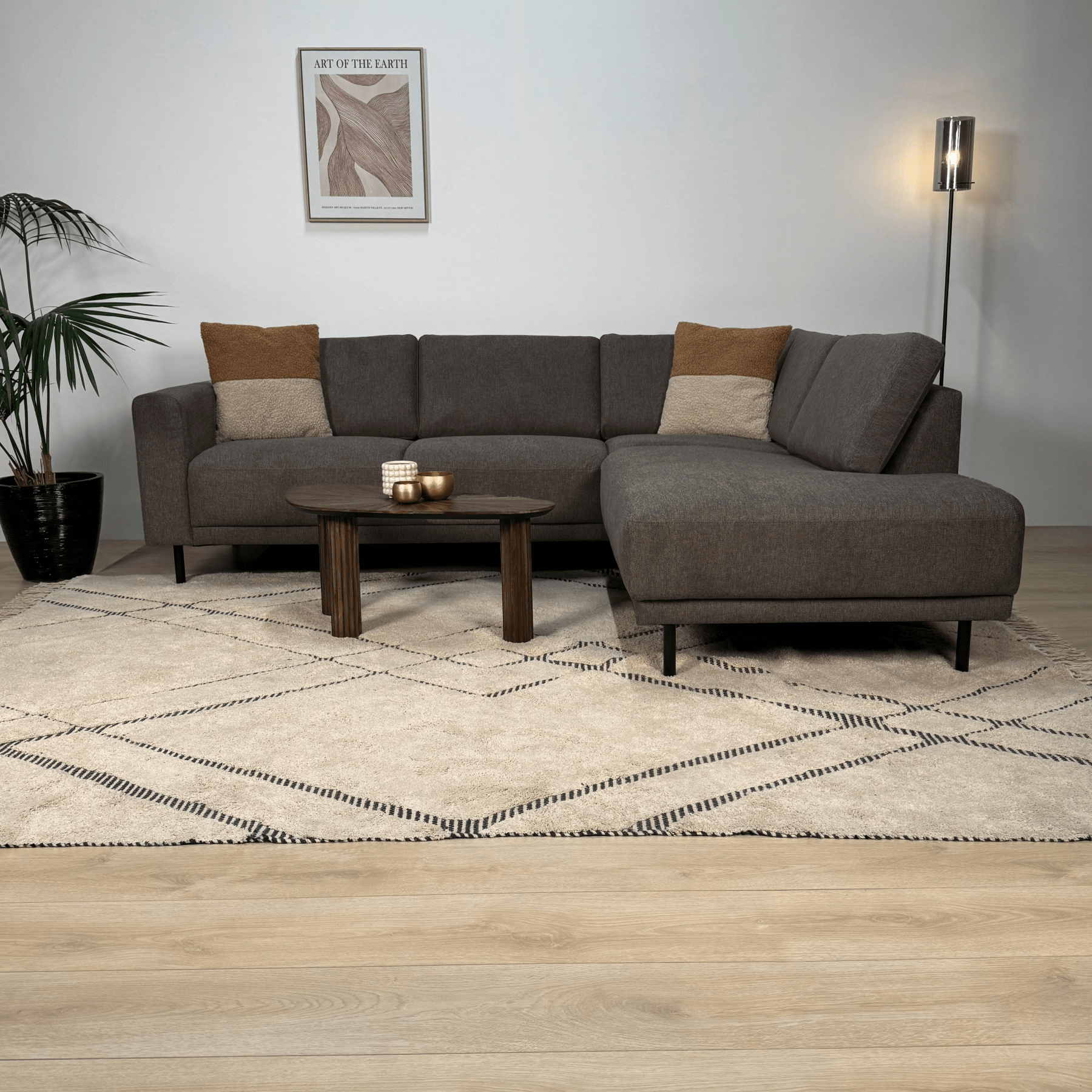 - Ruime afmeting: Met een breedte van 2400 mm en een open einde van 1970 mm is deze hoekbank geschikt om comfortabel te loungen en gasten te ontvangen.