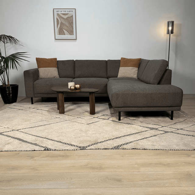 De Aniko 3-zits hoekbank met lounger biedt de perfecte balans tussen modern design en ultiem relaxcomfort. Dankzij het royale open einde creëer je een stijlvolle en uitnodigende loungeplek in je woonkamer. Ideaal voor wie houdt van ruim en ontspannen zitten met een elegante uitstraling.