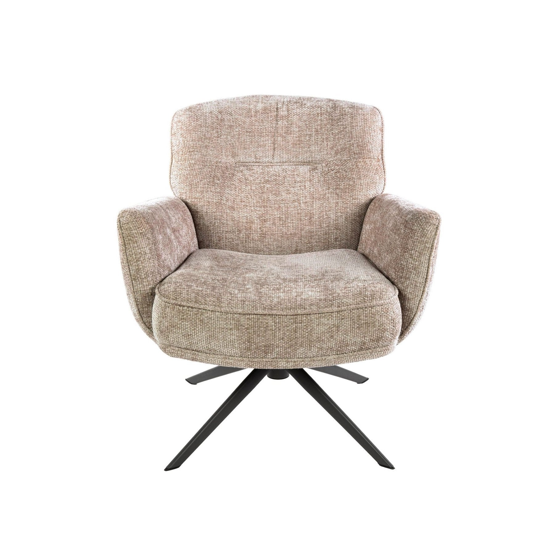 La silla giratoria Roma combina una suave tela Hoven rich con una base compacta y giratoria para que obtenga la máxima comodidad y flexibilidad en la sala de estar. El cálido color arena combina fácilmente con interiores naturales y modernos. Gracias al respaldo alto y al relleno, esta silla ofrece un buen soporte para largos momentos de asiento.