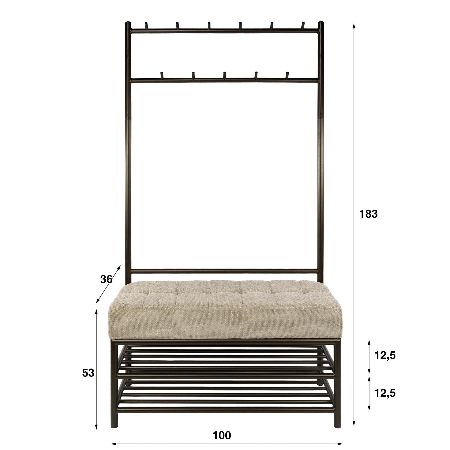 Este modelo ha sido diseñado con atención a la facilidad de uso: un asiento robusto, suficiente altura para colgar abrigos de manera ordenada y un acabado robusto que puede soportar el uso diario. El banco es adecuado para todas las estaciones y ofrece una apariencia ordenada y organizada sin ocupar demasiado espacio.
