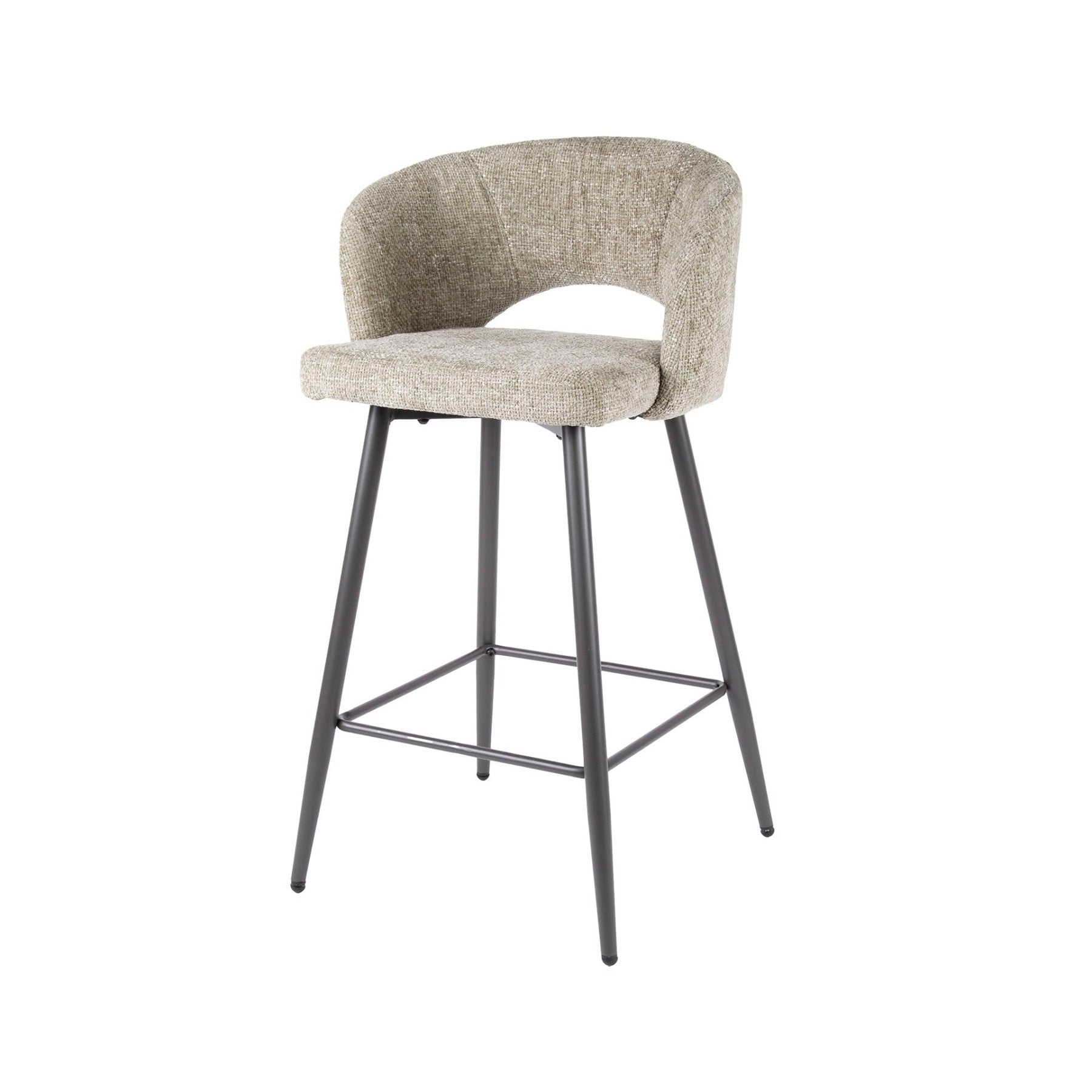 Los taburetes Luna son ideales cuando buscas una solución de asiento elegante y práctica. El color arena neutro aporta calma a tu interior, mientras que la tela ofrece una apariencia cálida. Perfecto como conjunto para barra de desayuno, isla o mesa alta.