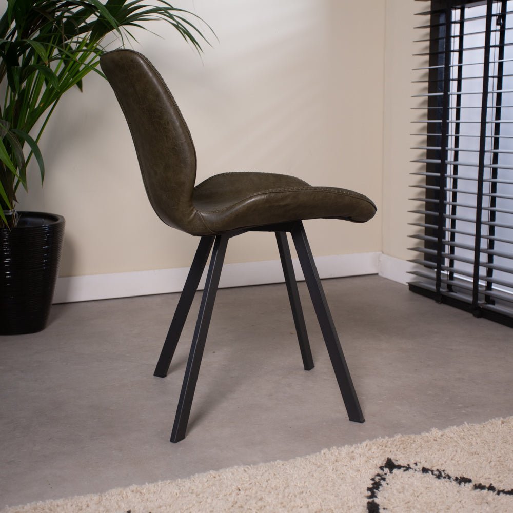 Silla de Comedor Industrial Verde Barry de Cuero Sintético - Sin Reposabrazos