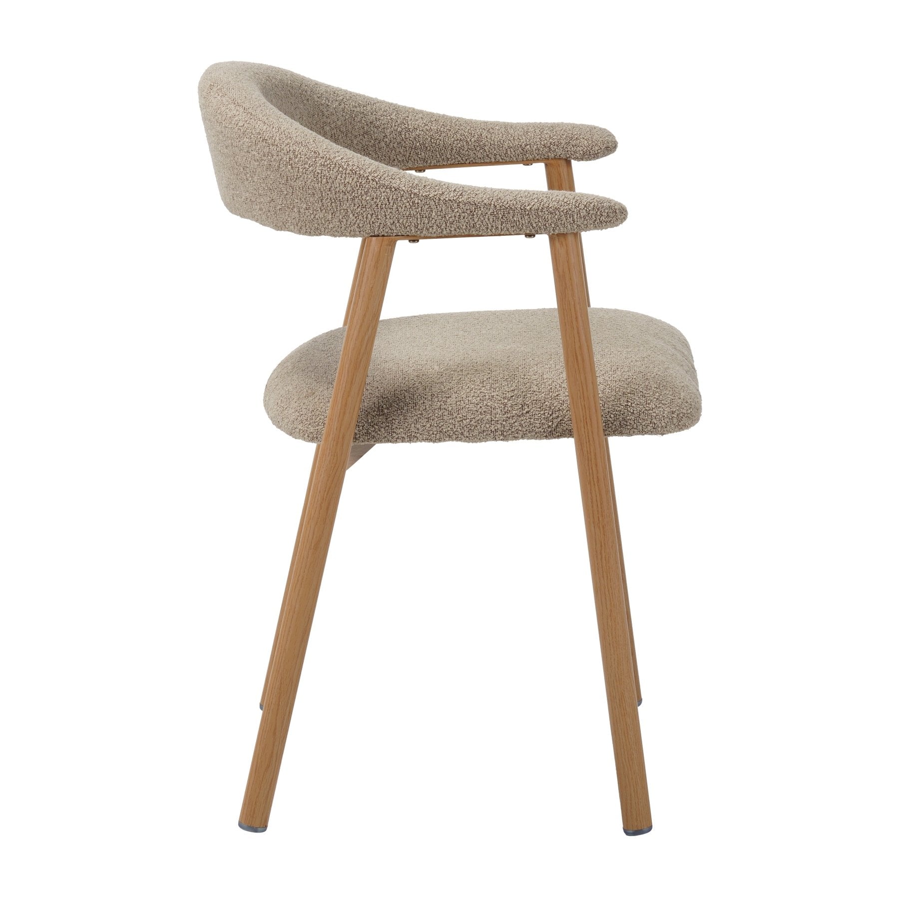 Silla de comedor Japandi color arena Bouclé Suki - Marco de aspecto roble - Con reposabrazos