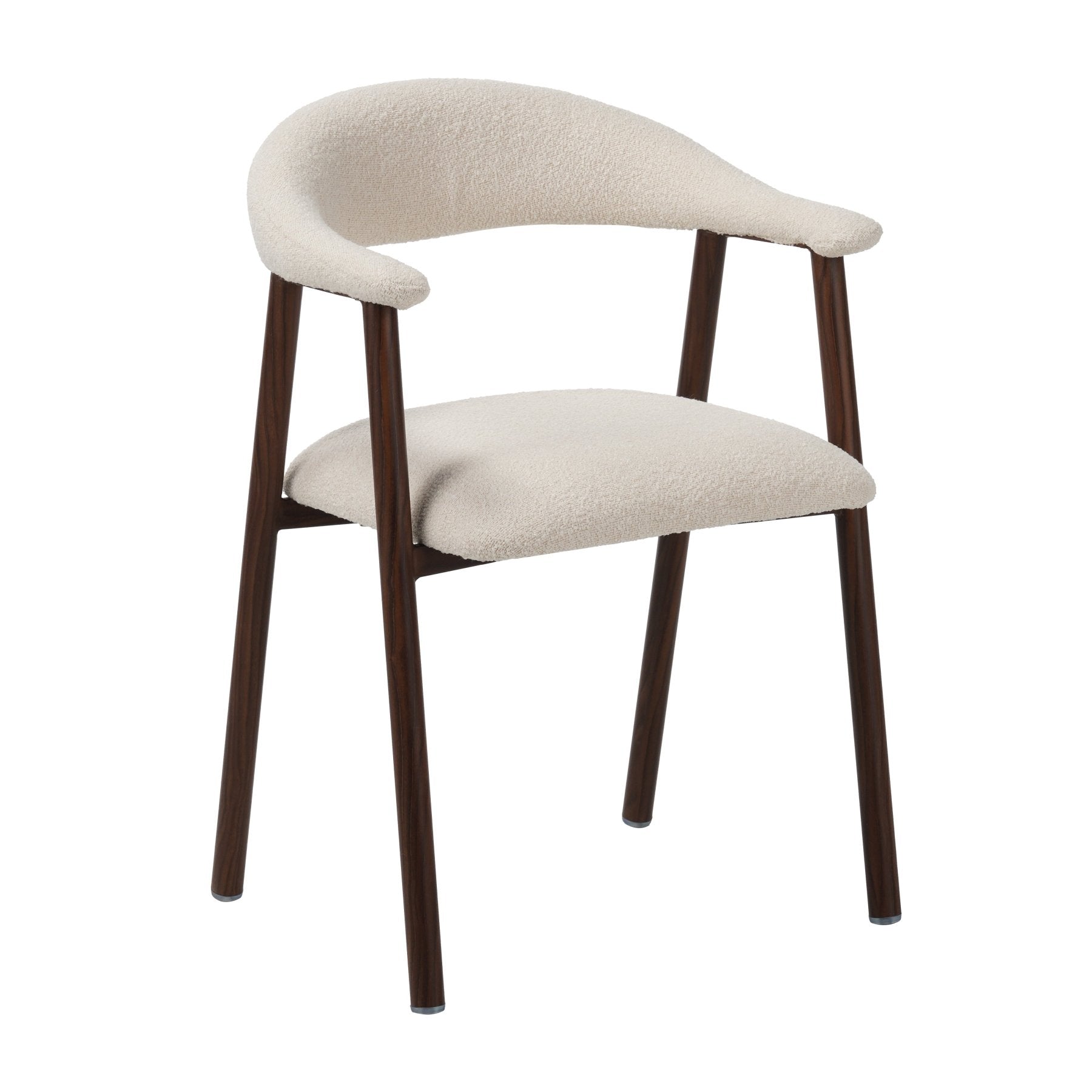 Silla de comedor Japandi Ivor Bouclé Suki - Estructura de nogal - Con reposabrazos