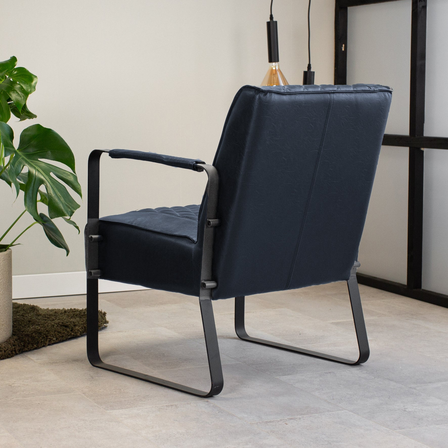 Fauteuil Peter Dimehouse Blauw LxBxH 68x62x45 Kunstleer Sfeerfoto schuin vooraanzicht
