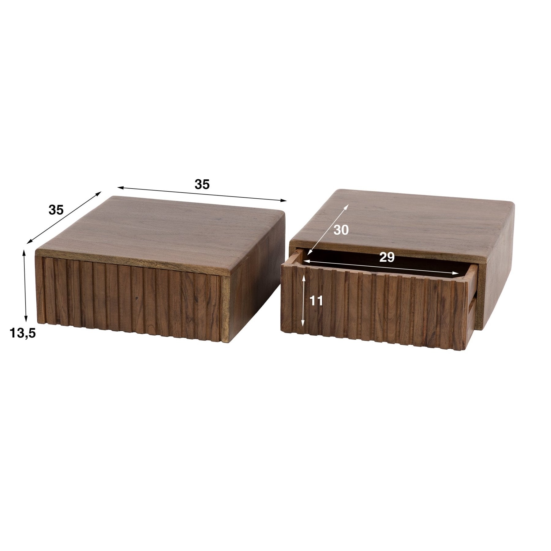 Mesita de noche flotante de madera de acacia color marrón ceniza – 1 cajón